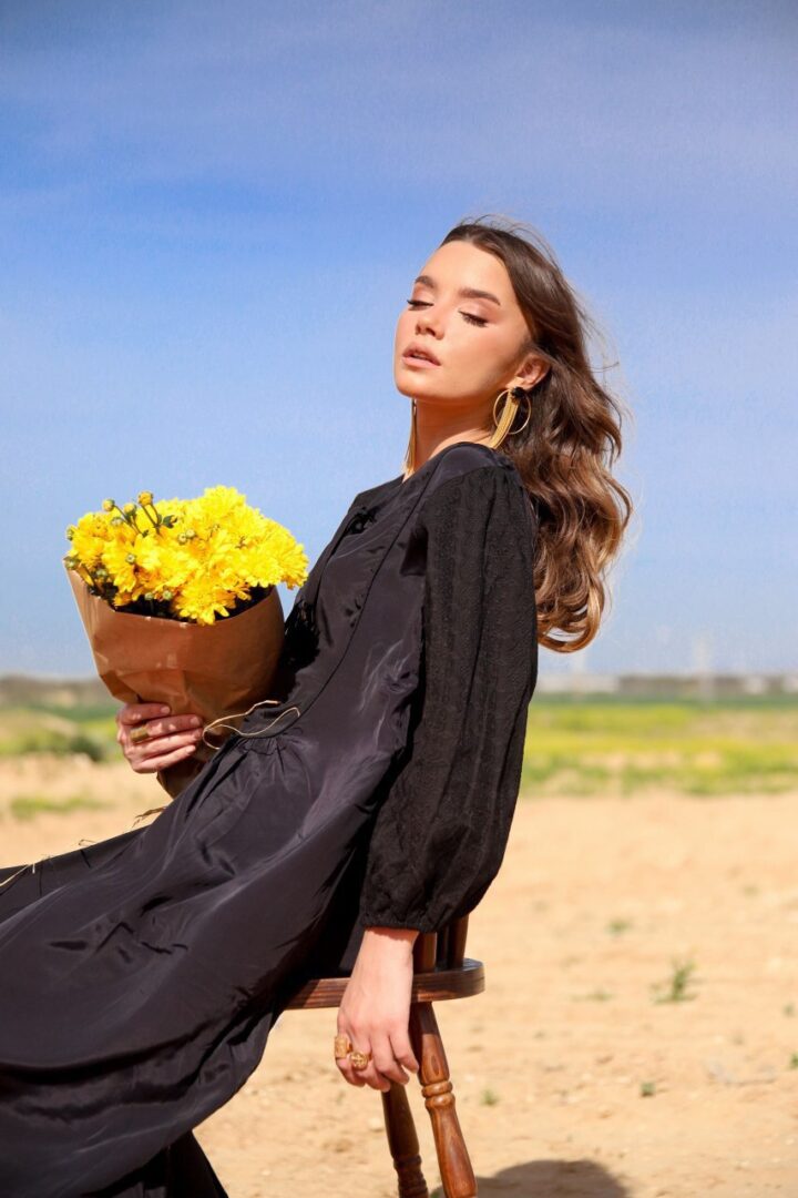The thin belt on the sides of the dress will allow you to easily emphasize the waist.