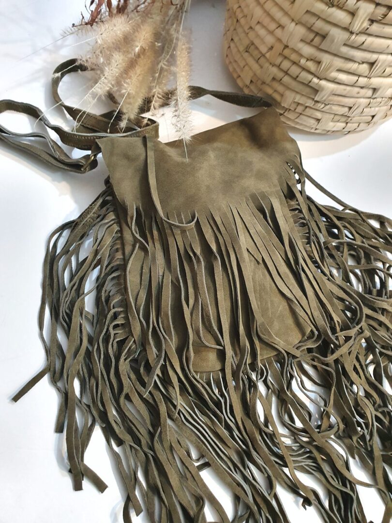 A bag full of fringes and a very long strap that allows for a game of length. A perfect boho chic look !!