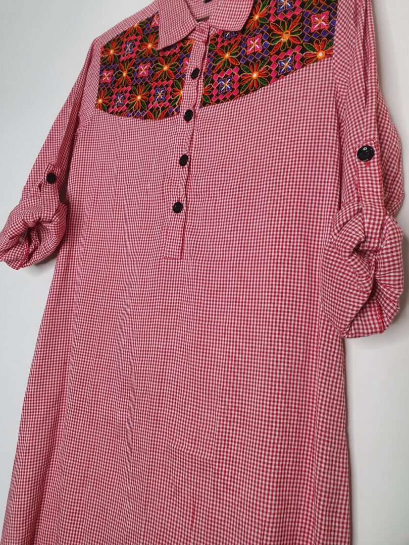A dress in a comfortable cotton fabric in a straight cut with the option of tying a belt at the waist.