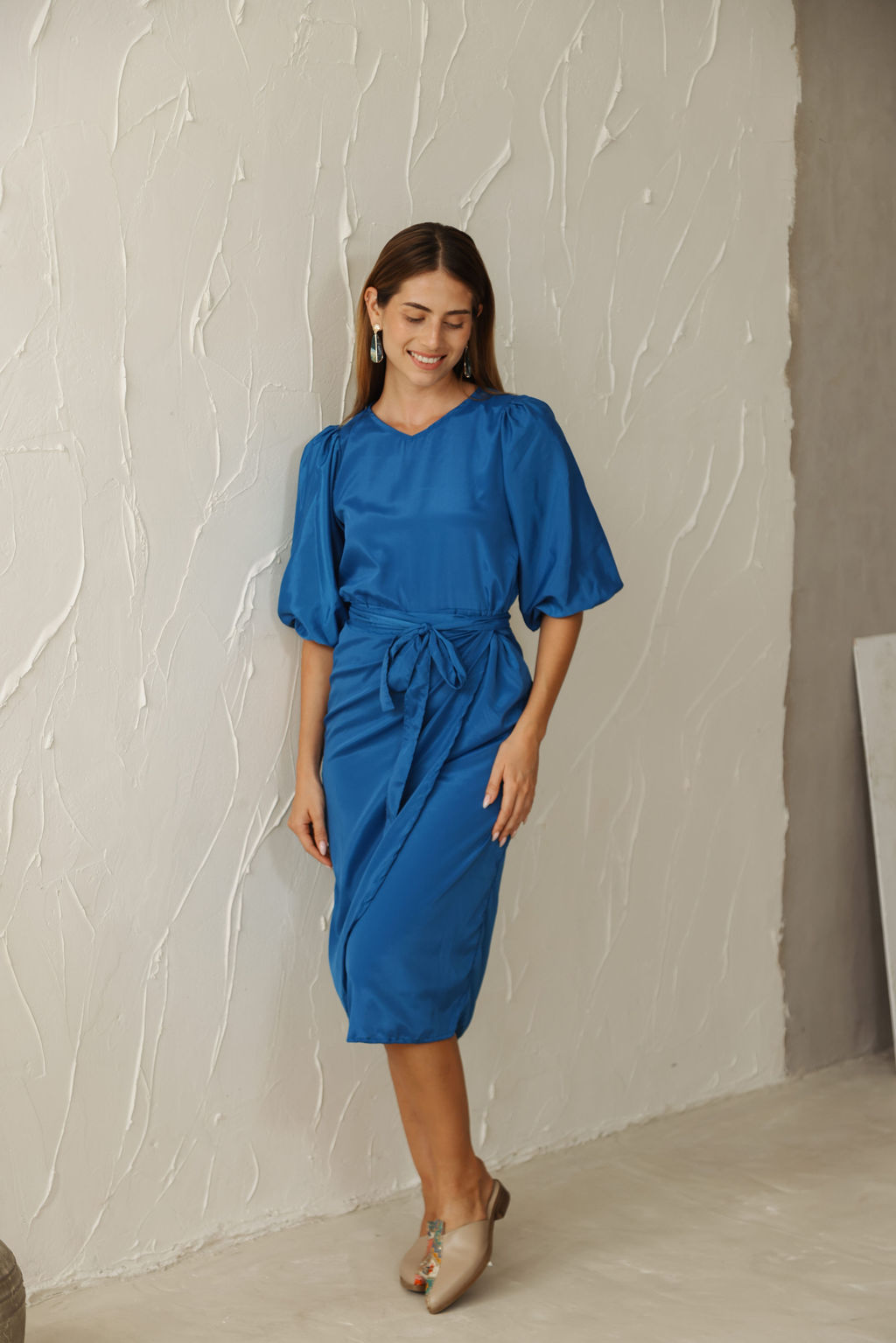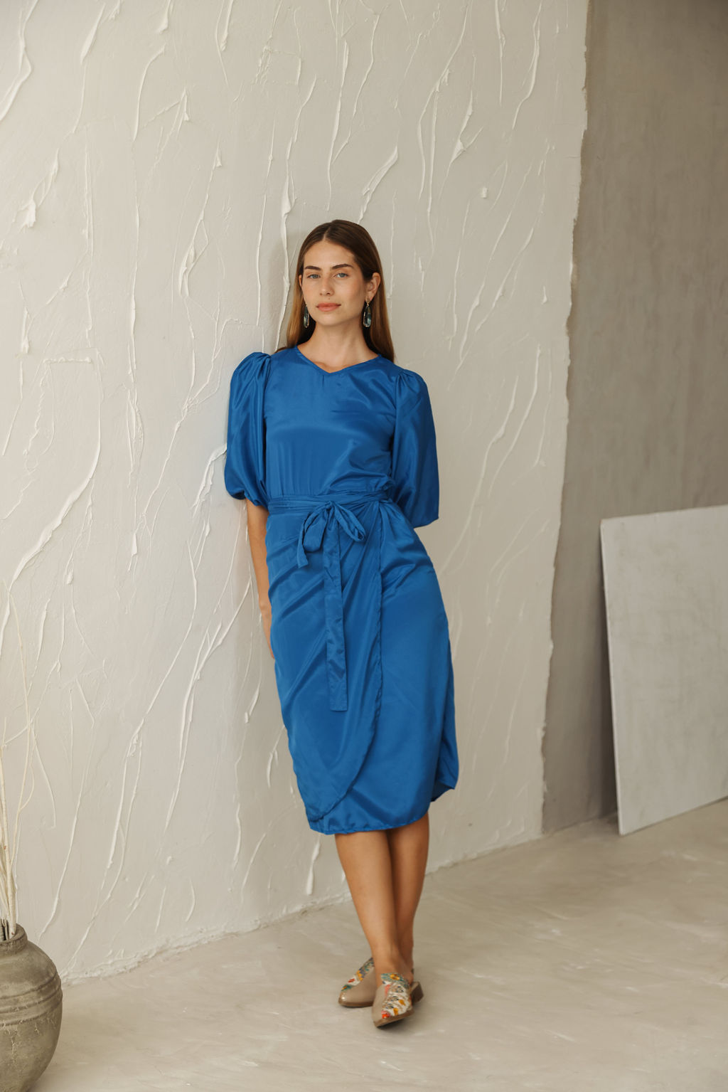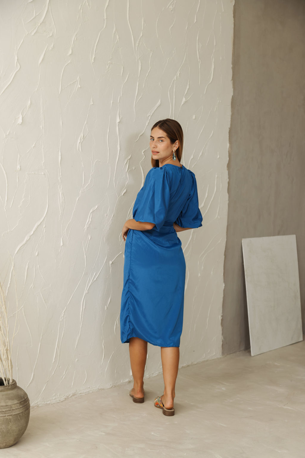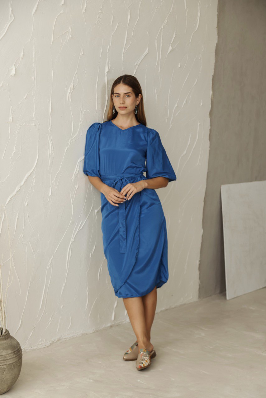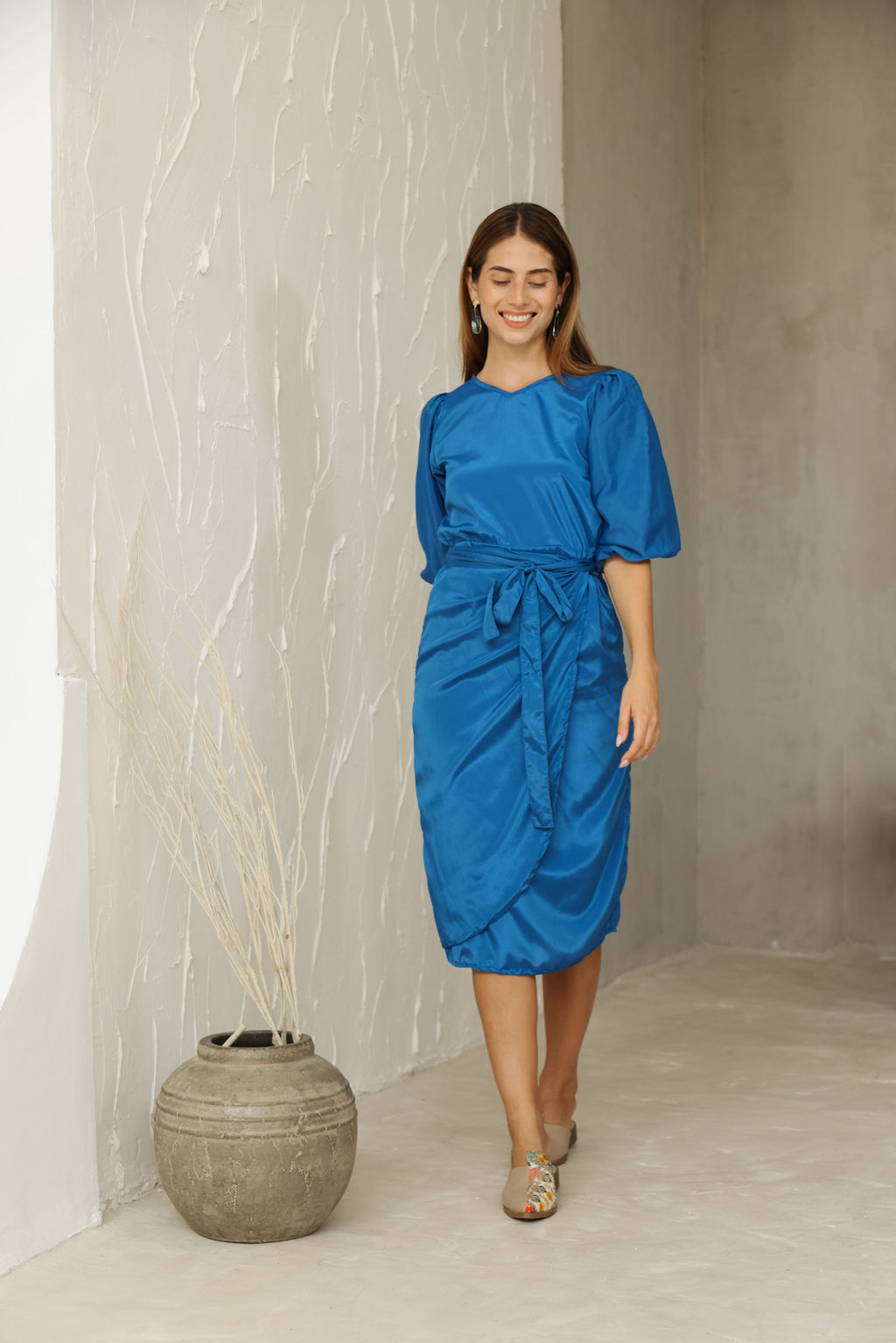 החגורה יוצרת הדגשה מושלמת של המותן והקשירות יוצרות טשטוש לאזור הבטן. אפשרות לקשור את החגורה מקדימה או מאחורה שרוולי בוהו שיק רחבים עם סיומת גומי שעוברים מרפק צווארון וי עדין ומדוייק.